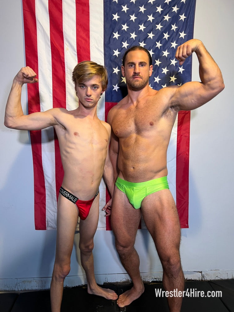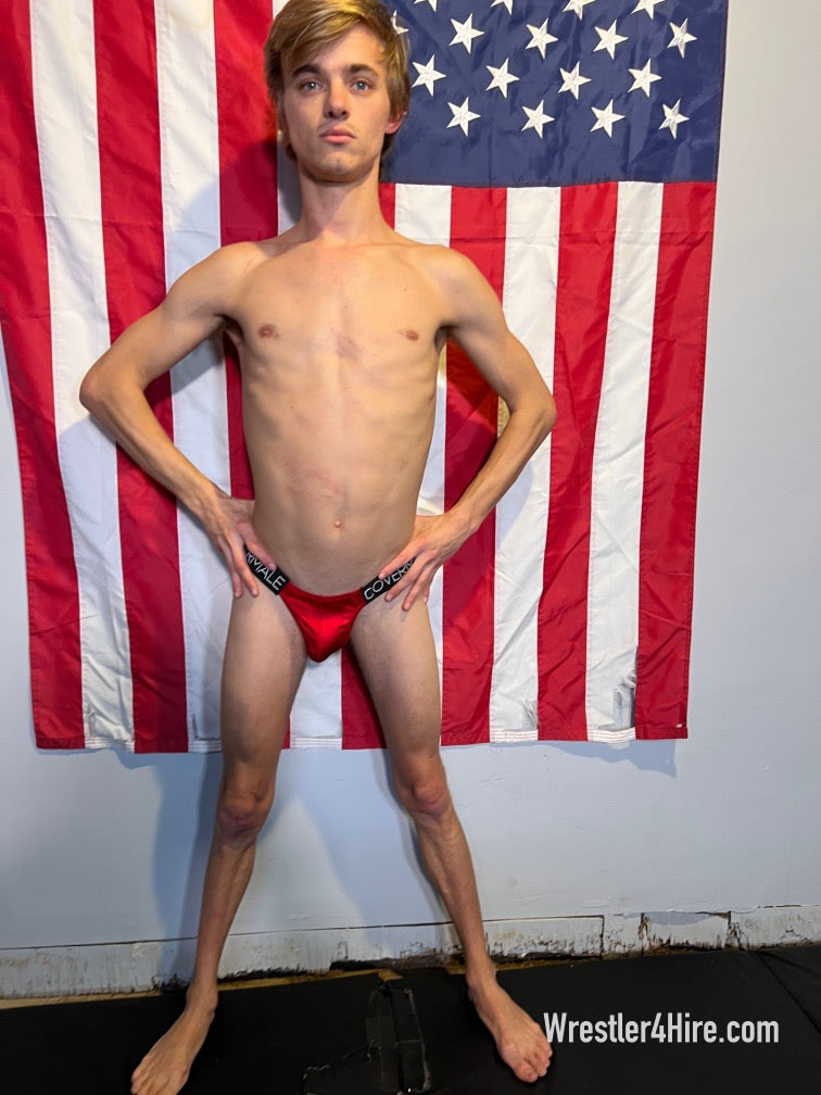After a few reps, Angelo lowered the freshman, but only to humiliate him further. With a quick yank, he pulled Frank’s jeans down to his ankles, revealing bright red underwear that fit perfectly against his slim frame.