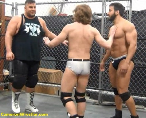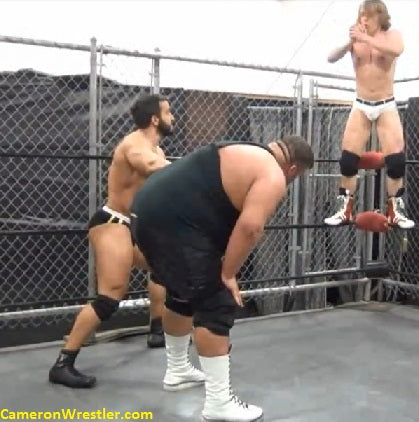 A sudden rattle of chain link disrupts their training session, a mocking laugh, and high above we see none other than handsome and huge Danny DeMented snickering heartily from mid rope. The challenge is made. Danny DeMented in a tag team partner match against Maverick and DuMont.