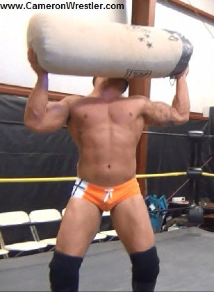 Lon is in contest shape, but isn't doing it for a trophy. He's challenging himself with no shiny gold reward at the end. The warm-ups are assisted and instructed by "Coach DuMont." With a wealth of fitness knowledge, Lon seems like the clear-cut choice for whipping someone into shape. NOTE: He's done it for Jonny Firestorm and myself. Lon is very old-school is his training techniques. "Keep it simple, stupid" is one his personal montras. As Brad picks up, presses and slam down the heavy bag as commanded by Coach DuMont.