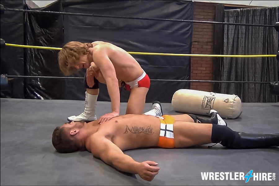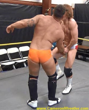 The match takes a turn from gut bashing to ball busting. The pain is written all over their faces. Brad isn't going to take this lying down. He takes a cheap shot of his own and rocks Lon.