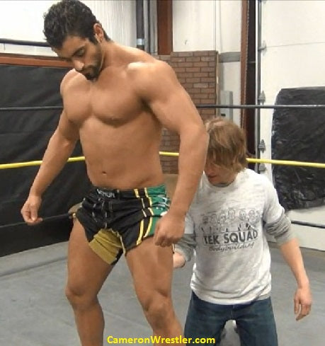 What follows is the stripping and destruction of a bodybuilder. Tons of trash talk, submission moves. Lon shows who is the boss and the real wrestler, stripping Marc down to his underwear. Trapped in Lon's mighty Sleeper holds Marc's muscle get weaker and weaker with every move. He tries to fight back but Lon doesn't give him any chance for a comeback. He has to follow all commands as his mighty arms get heavier and heavier.