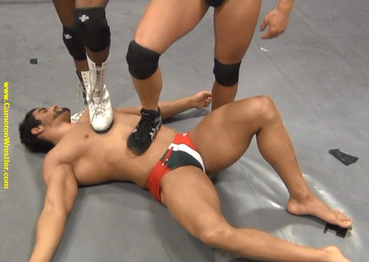 Marc Merino is a well-known internet star, who is in love with the gym and working out. Weighing nearly 275 pounds, he almost outweighs the pro tag team, but the masculine muscle boy can take it from the best.