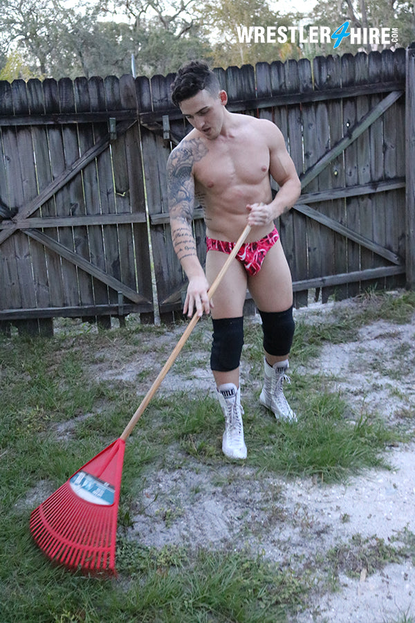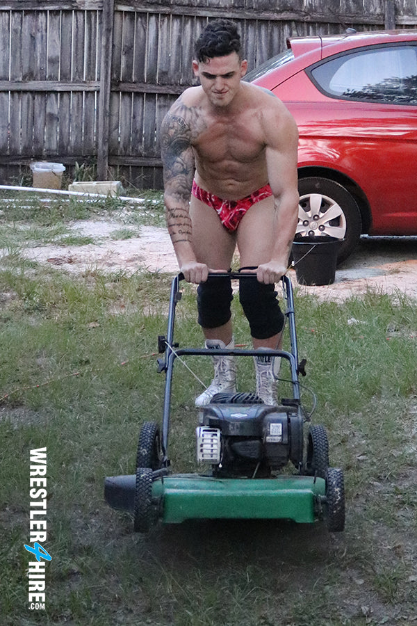 One way or another, that floor’s getting mopped. The question is, who with? The loser bitterly mows the lawn, cleans the car, and rakes leaves in only a speedo!