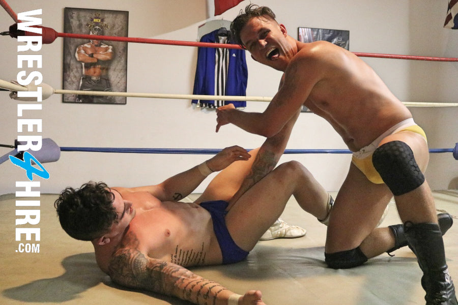 Rolf Fulton is an up and coming heel in the ranks of the W4H wrestlers. He’s hot, he’s strong, and he has a burning desire to make his opponents suffer. His opponent for this match is none other than Marco Thunder, a man with a reputation for making wrestlers suffer mercilessly at his hands. Many wrestlers have been left lifeless in the ring after stepping in the ring with Marco. There are several similarities in these two wrestlers. Both are tall, both have lots of muscle, gorgeous hair, handsome looks, and both enjoy making their opponent suffer. Does young Rolf have what it takes to survive a match with Marco?