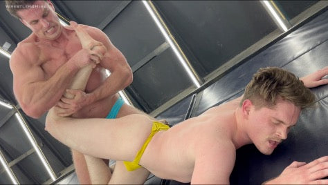 Mark was having too much fun playing with his food, locking him in cradles, grapevines, single-leg crabs, camel clutches, and Boston crabs, making sure TeeJay felt every second of his control, even the playful sting of some ass slaps from the big hands of Mark LAX and grinding his pelvis into the prone, helpless body and ass of the captive pretty boy. He couldn't help put mess up the wanna-be models perfectly groomed hair.