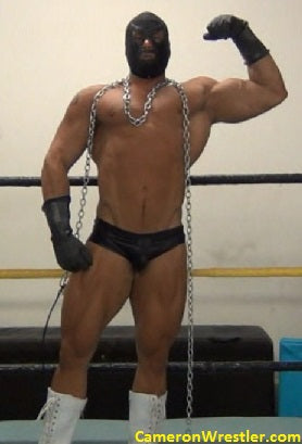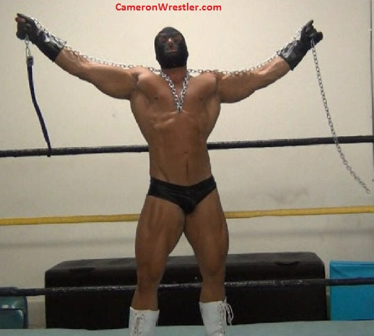 Enter Mark Muscle (6'4" and 250 lbs.) a full-time bodybuilder and a part-time model who moonlights as a dancer. Almost a natural sadist, who picked up wrestling fairly quick. His costume of personal choice for his debut: black latex trunks, white knee high boots, an executioner-style black mask and his wraps himself with a cold, steel chain.