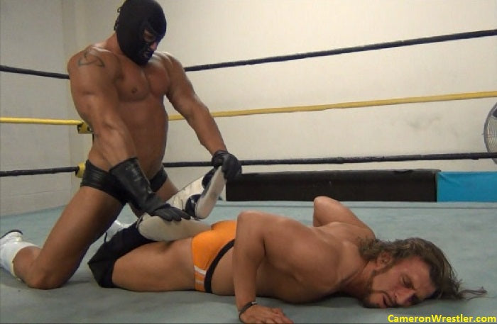 In this match he dominates Garrett Thomas (6'1", 205 lbs.) for the majority of this match. In between posing, Mr. Muscle shows off his knowledge of punishing wrestling holds.