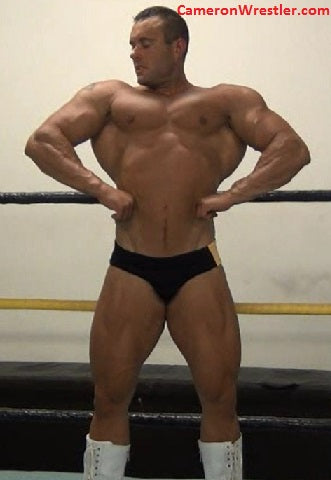 Mark is forced to flex for their entertainment, as our primeval duo takes turns brutalizing this modern Prometheus, dragging him from one end of the mat to the other in a never-ending effort to break the big guy with double leg locks, ball bash, and a long and torturous stretch session you have to see to believe. If you want to hear a massive man scream, cry, and beg like a little bitch at the hands of a loincloth-wearing antediluvian, this is the match for you.