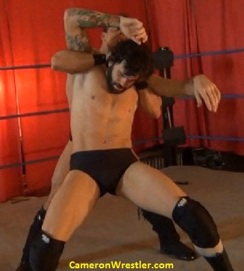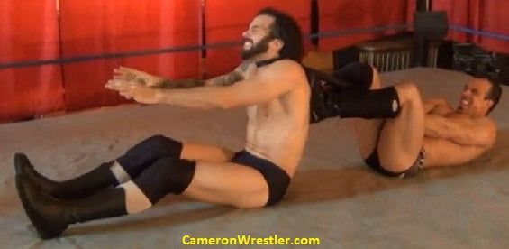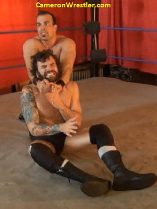 MarkO applies a vicious camel clutch to the tattooed Vachon, clamping his thighs around Vachon’s back while wrenching his chin backwards unnaturally. MarkO is toasted, demanding money for his wrestling school, while Vachon is resistant to fight...making him the perfect victim for this slow, calculating, dialogue-heavy punishment session that sees both men reduced to staggering, struggling, limping piles of pathetic weakness.