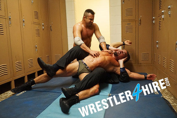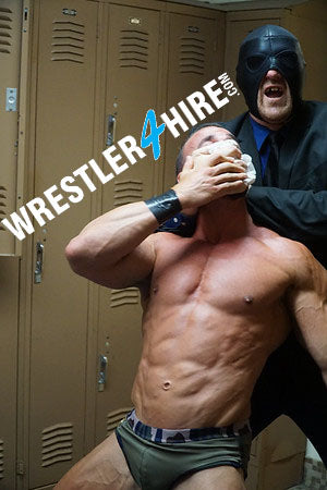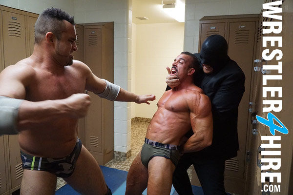 Our resident henchman, Max Quivers, is back, filling up the locker room with his massive presence and trademark suit and mask. MarkO has done something to piss him off, and when Max starts laying it on, MarkO quits and starts to leave. But no one leaves the Max Quivers fold that easily. Disabling MarkO with some well placed drowsy dust, Max summons Teddy Trouble to help teach MarkO a lesson for his disobedience. And what a claw-tacular lesson. With MarkO flat on his back, legs spread, crotch exposed, check your pulse if you don’t find all that muscle tempting. Max and Teddy start working those ripped abs and inner thighs with nerve damaging claws. You might start to feel sorry for MarkO as their torture focus switches back to his abs, but you’ll forget all about that when MarkO’s legs keep rising up in pain, revealing his incredible ass.