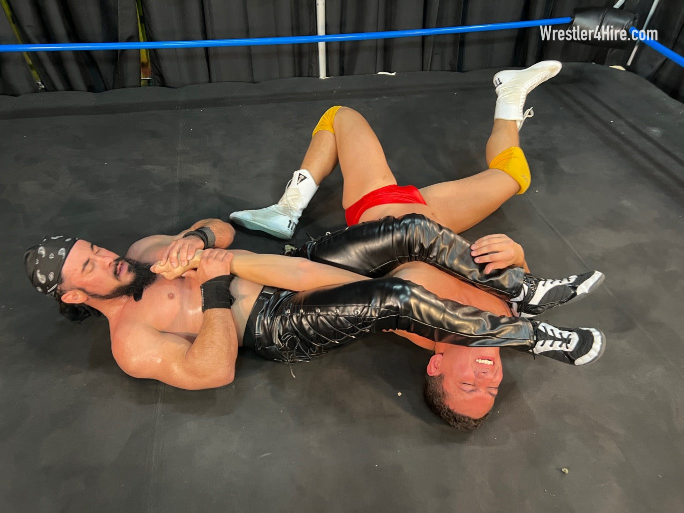 Once Kris has had enough of his lesson, he decides it is time to end it once and for all and show Matt who is who. A sleeper hold that nearly puts Matt out is followed by a suplex and then a devastating arm bar which leaves Matt laying virtually motionless in the ring. Kris decides to take the ring jacket Matt entered with as his prize, that is at least until Matt (in a somewhat rookie mistake), after being berated by Kris, gets up one final time, only to find himself on the wrong end of a pile driver in one last brutal lesson. Finally beaten, Kris decides he doesn't want the ring jacket after allm, and just tosses it in Matt's direction, leaving the ring, asking Matt if he really wants to be a part of "His world". If you enjoy a student/teacher video where the teacher may not necessarily have the best interests of the student in mind, Kris' deconstruction of Matt in this video will be just for you!