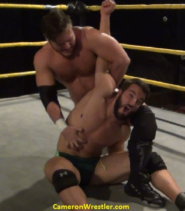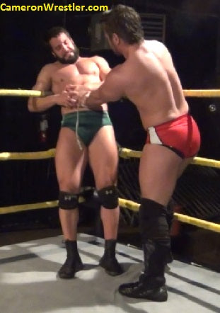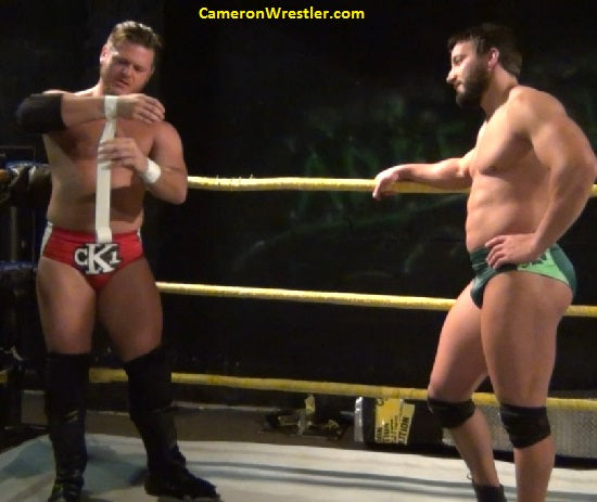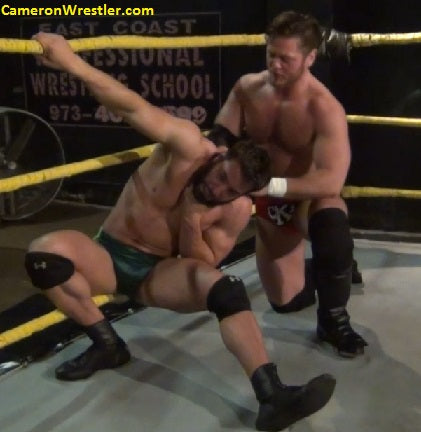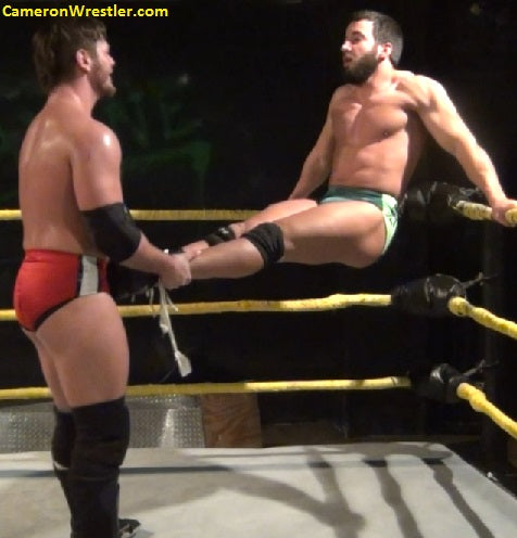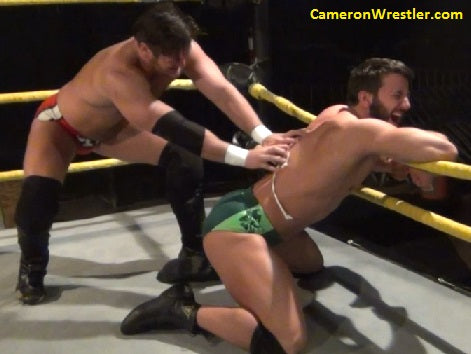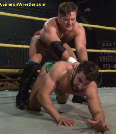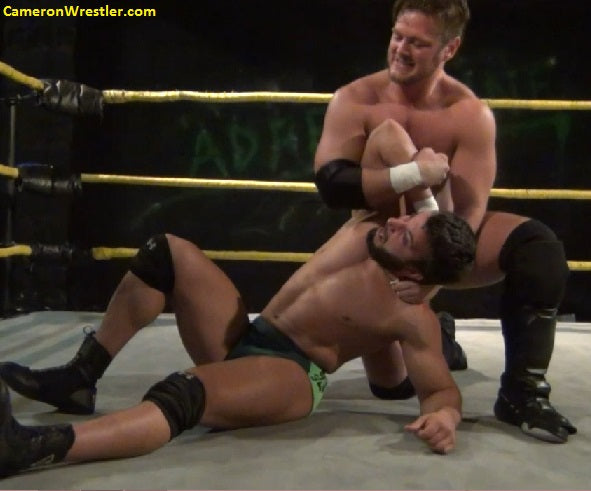 It's dirty tricks and asses kicked in this match between two world-class pro wrestlers. Caleb Klein (5'11", 185 lbs.) is relentless in his attack on the chiseled Maverick. The action goes all around the ring without a breath of air for the bigger opponent.