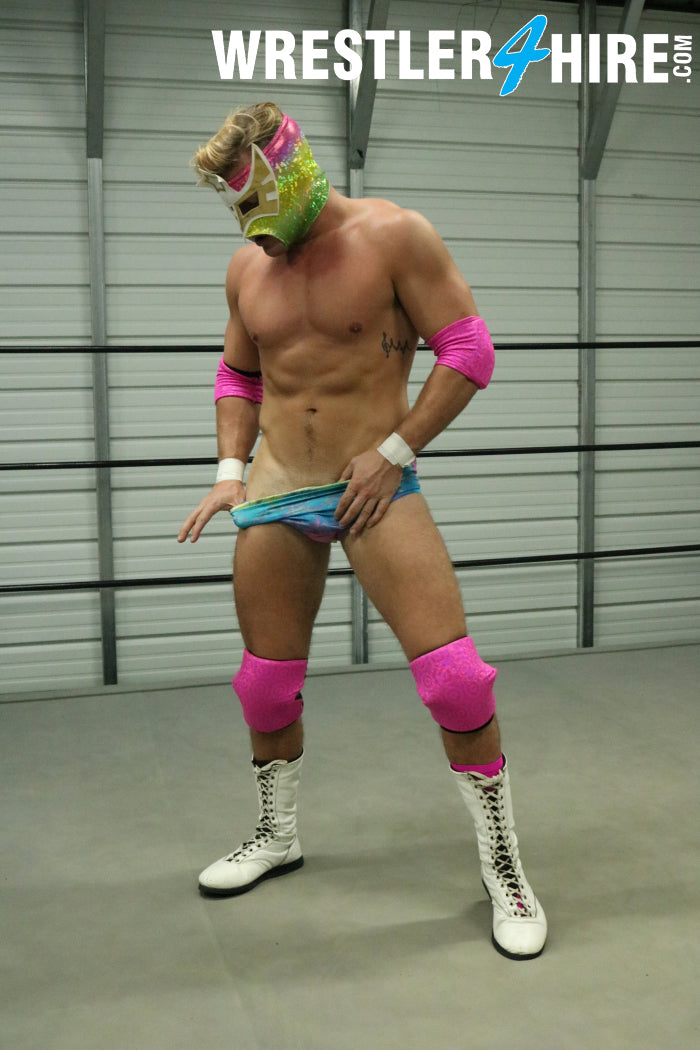 As the match seesaws back and forth, the identity of the Mystery Hunk is finally revealed for all to see, and Gabe realizes that he may have known more about his opponent than he first thought. Not one to leave any opportunity to punish an individual alone, Gabe delivers a final devastating piledriver to his opponent and the revealed Mystery Hunk is left unconscious in the middle of the ring, unable to pivot and thrust his hips no more. A sure winner with sexy moves, this video is a must see!
