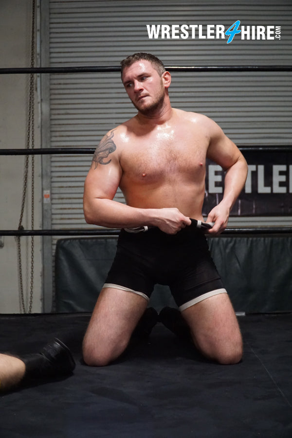 Nick Justice is in full on heel mode and is relentless in his punishment of sexy Noah Yuckenberg. Both wrestlers look amazing in this great match!