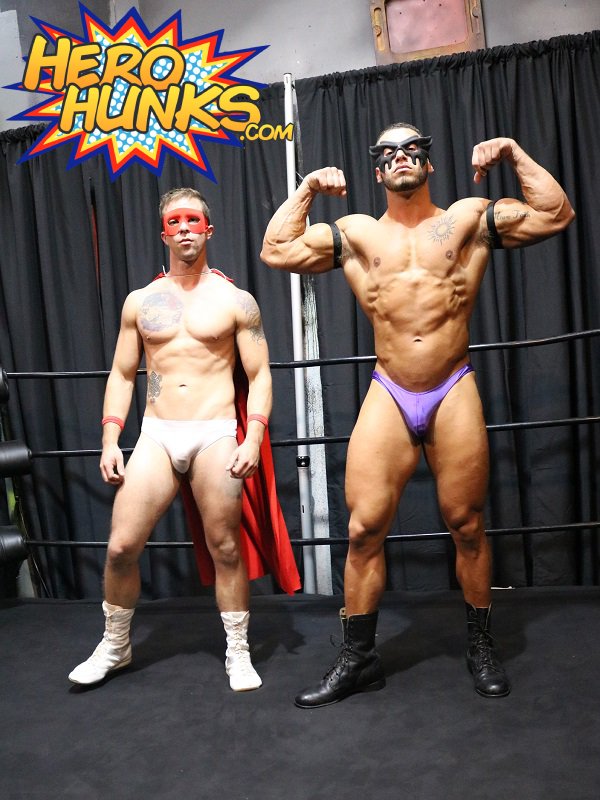 Power3000 is back to take on his next hero, and this time he has Victor Voxx in his sights. Power is a big man, with an impressive upper body and thighs like tree trunks. Victor, while obviously in shape and very toned, seems to be out-powered if one were to go just by the looks. So there is no surprise when Power3000 takes the early advantage and throws Victor to the mat. Delivering blow after blow to the midsection of Victor, the toned young man then finds himself over Power3000's back virtually broken in half, before he then ends up over our villain's knee.
