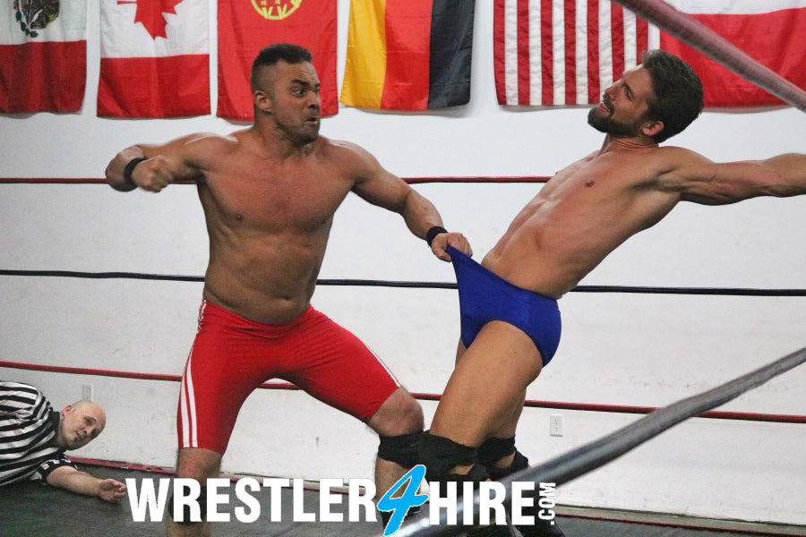 They don't get too much better looking than Ronnie Pearl...damn what a handsome sucker. Between the face and that beard and the way he looks in trunks, not to mention one of the hottest 6-paks on the planet, he's a dude just waiting for a beating...and Mr. Trouble is just the brute to deliver it. Once this match kicks in it's non stop gut bashing, with relentless fists slamming and grinding into tight, ripped abs. Something that makes this match super hot is the way Ronnie Pearl suffers. You can almost feel the pain as the never ending fists of Trouble whack his hard flesh. Extremely erotic gut punching on an incredibly handsome stud who suffers big time. Get a copy...it's great!