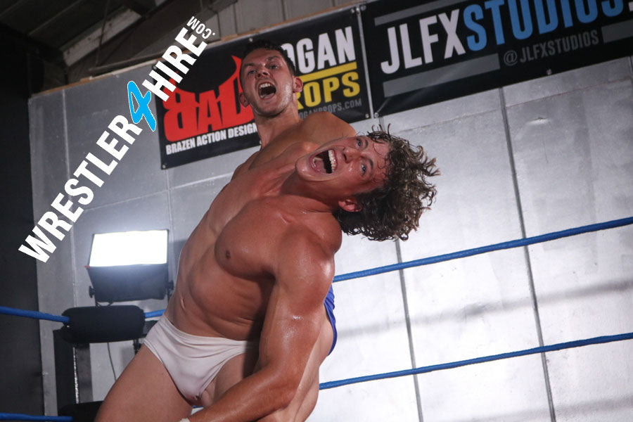 Dimitri Darkthorn may be the new guy on the block, but he’s already surprising the hell out of everybody at Wrestler4Hire. Sure, he may look like “a little twink,” as resident stud Scrappy rudely remarks. But Dimitri talks trash like nobody else, getting up in the buffer, more experienced Scrappy’s face with no fear at all. They circle, square off, flex, and get crazy heated making nasty, catty threats. When they finally tie up, it’s almost like you can feel the earth shaking under their feet!