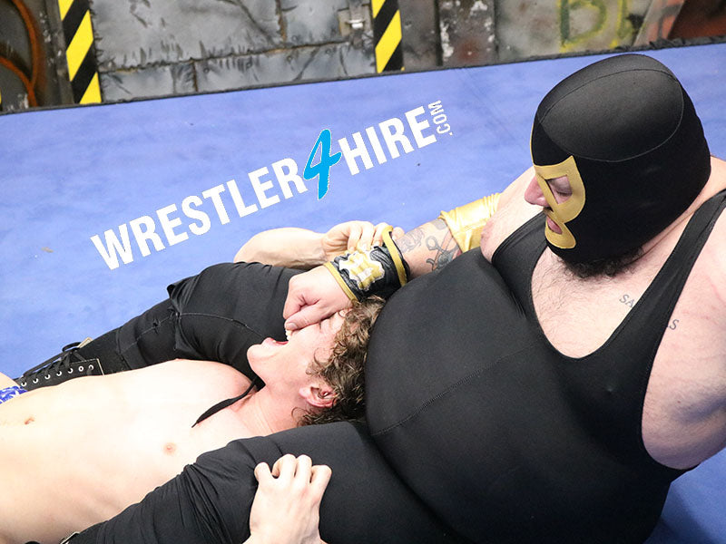 Just as you think he will use this on Scrappy the Golden Terror then does the unthinkable and attacks Cameron behind the camera. Dropping the camera, Cameron is then dragged into the ring and becomes the focus of the Golden Terror’s assaults. A new cameraman picks up the action as we see Cameron stripped of his t-shirt and then piledriven into the exposed wood in the ring. Virtually out, the Golden Terror then removes Cameron’s jeans until he is just wearing a white speedo. A punishing ball grab and then subjected to the same trunk pulling as Scrappy had experienced earlier, Cameron is choked and then sleepered out. One final pile driver and Cameron is placed on top of the unconscious Scrappy. A devastating beating of two of W4H best combatants!