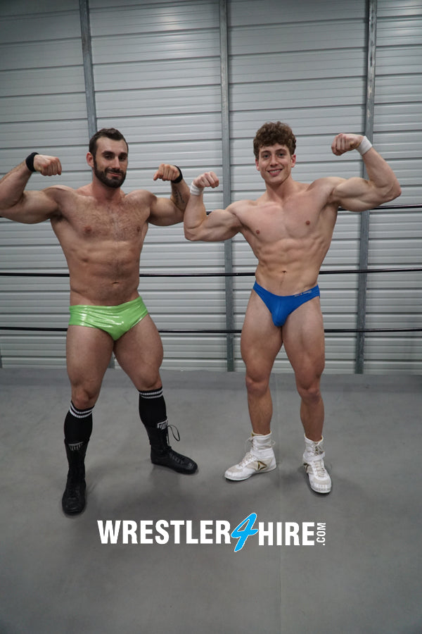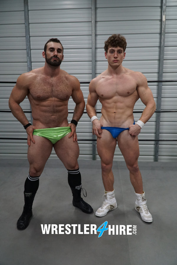 With that beaming, infectious grin of his, Jaxton pulls Scrappy up by his curls and eases him into a “relaxing” sleeper. Now the flawless muscle stud looks a lot less intimidating as he lays unconscious at Jax’s feet. Jax revives Scrappy just enough to make a hot and sweaty figure four worth it, as the rookies cries and slaps...unable to find the words he needs to ensure his release.