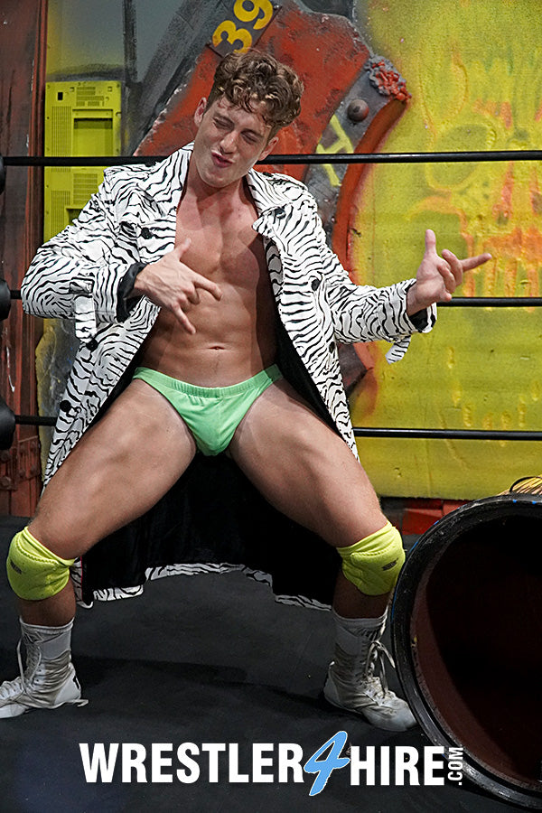 Scrappy strips down to match him, revealing mint green speedos. Scrappy presses his boot into Max’s chest, slams him hard, and uses his own legs as a torture device. Bearhugs, wedgies, skin-on-skin, muscle-on-muscle...and more of Max’s ass than you could ever need (you’re welcome!). Not to mention some final act barrel beating!