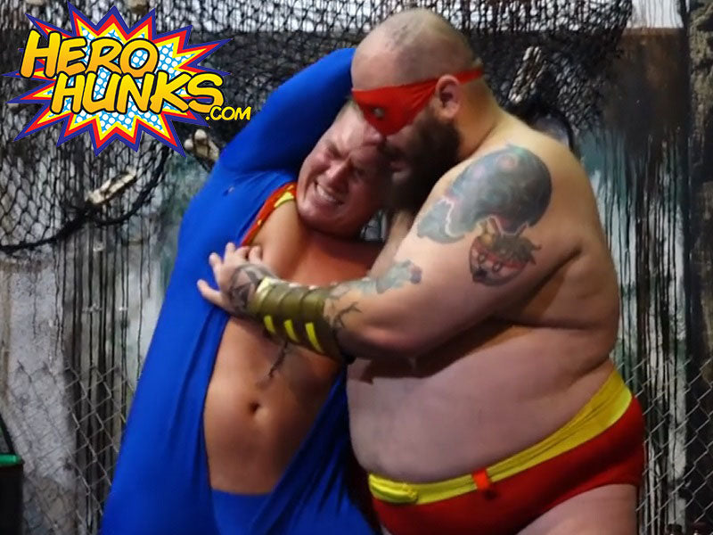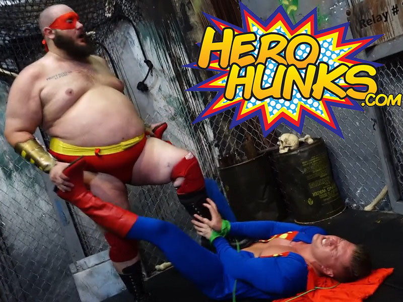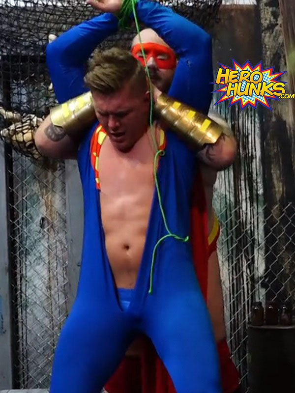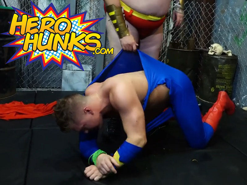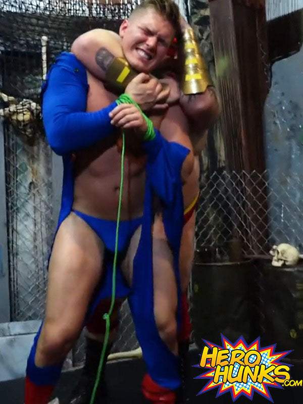 The final humiliation occurs when a Kryptonite dildo is entered into the match. Will Steel Man fall victim to one more overly cruel act of receiving the Kryptonite dildo, effectively cancelling all of his powers? You’ll have to watch to find out!