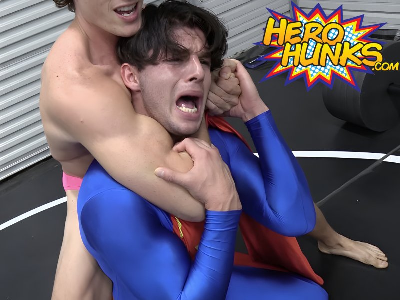 With methodical precision, Fanboy proceeds to dominate the hero, subjecting him to one hold after another, even utilizing Steel Man's own cape to choke him. He systematically strips Steel Man of his costume, starting with his upper chest and gradually exposing the hero until he is left wearing only a red speedo. Dropping Steel Man across his knee in a devastating backbreaker, the powerless hero struggles to remain conscious amidst the punishment. Move after punishing move is executed, leading to a final act of indignity as Fanboy tightly wraps his muscular arms around Steel Man's head, squeezing until the hero slowly fades away, slipping into unconsciousness. Steel Man could never have anticipated this shocking turn of events when he first encountered his adoring fan, and it's safe to assume that he will be far less trusting moving forward. This video depicts a gripping tale of betrayal and punishment as a heroic figure falls victim to a villainous fan.