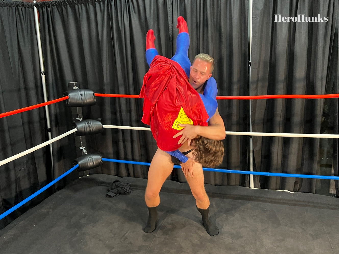 Steel Man, the embodiment of raw power and masculine perfection, answers the call, ready to put Tanner in his place. But Tanner isn't just brawn—he's got a devious plan up his sleeve. Hearing of Steel Man’s arrival, he bets the superhero his iconic uniform, confident he can take him down. If he loses, he’ll agree to leave the gym forever. Steel Man, amused by what seems like an easy win, agrees to the challenge without hesitation.