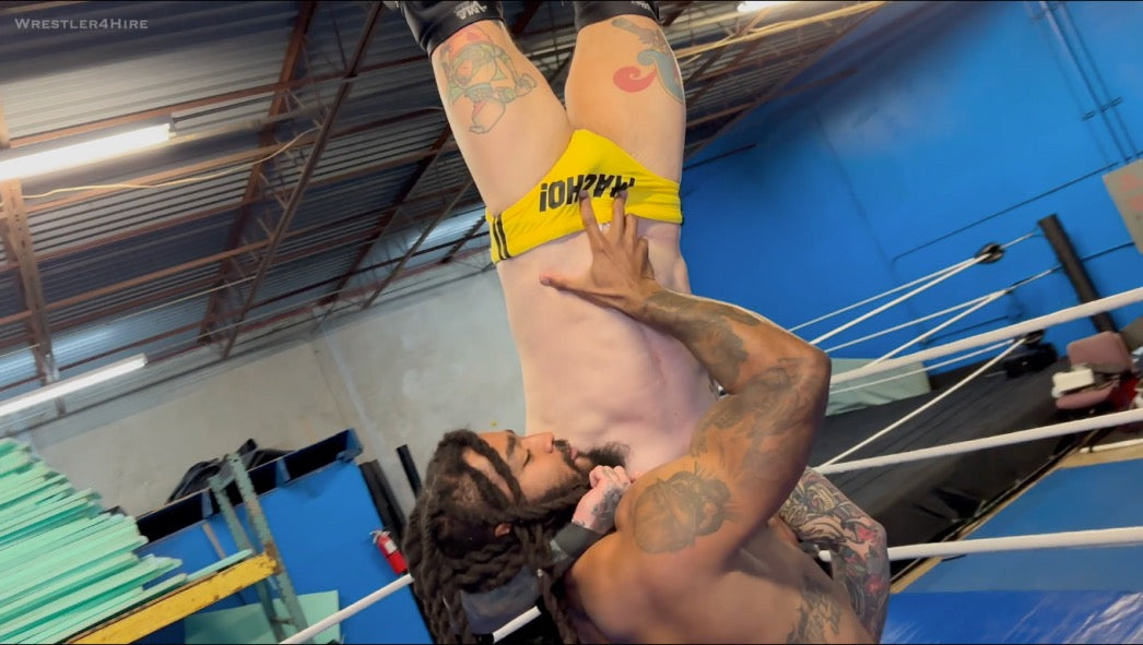 His competition? First, there’s Daddy-O, a 6’3”, 225-pound Texas jock with long curly hair and a frat-boy swagger. He’s high-octane and loves nothing more than suplexing and torture-racking his opponents. With broad shoulders and a powerful back, he can hoist just about anyone into a punishing torture rack.