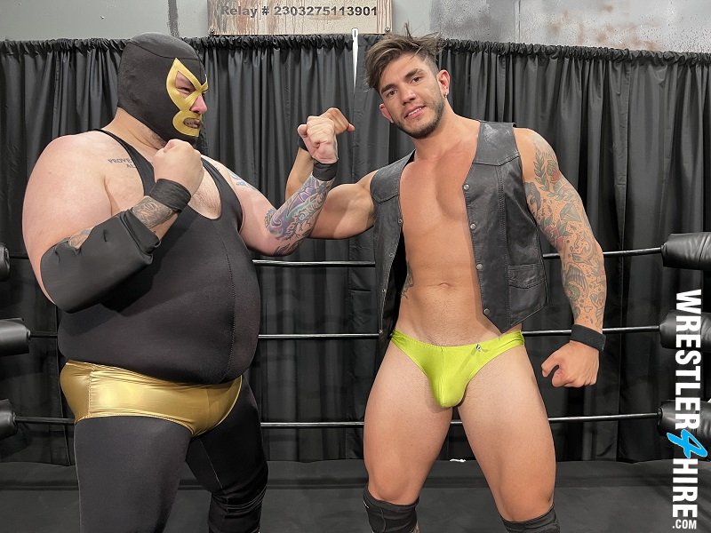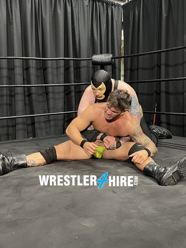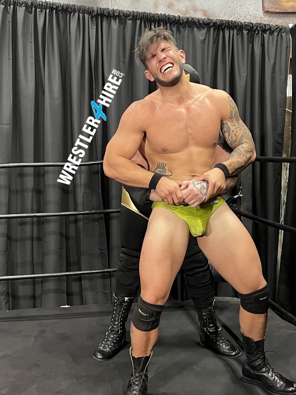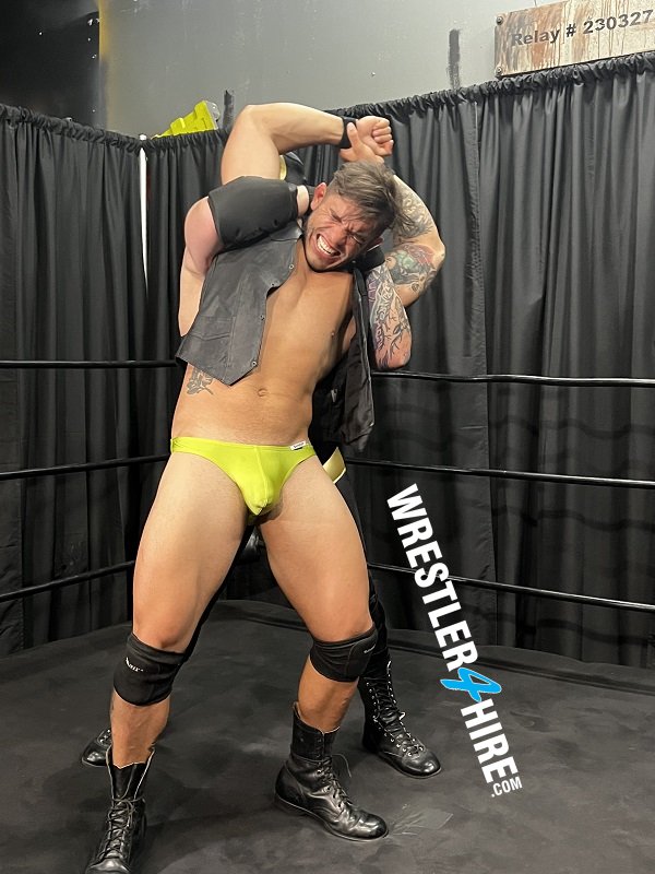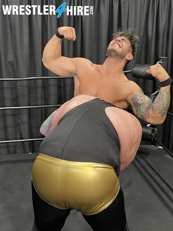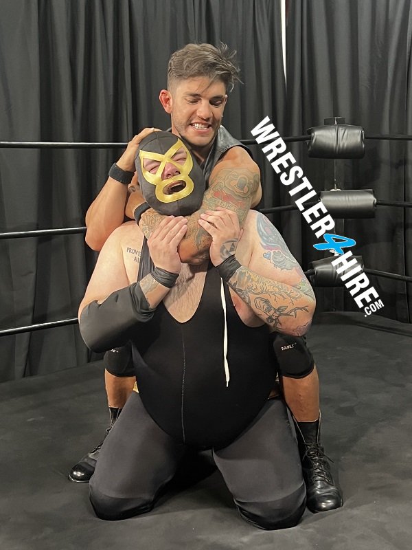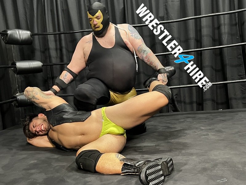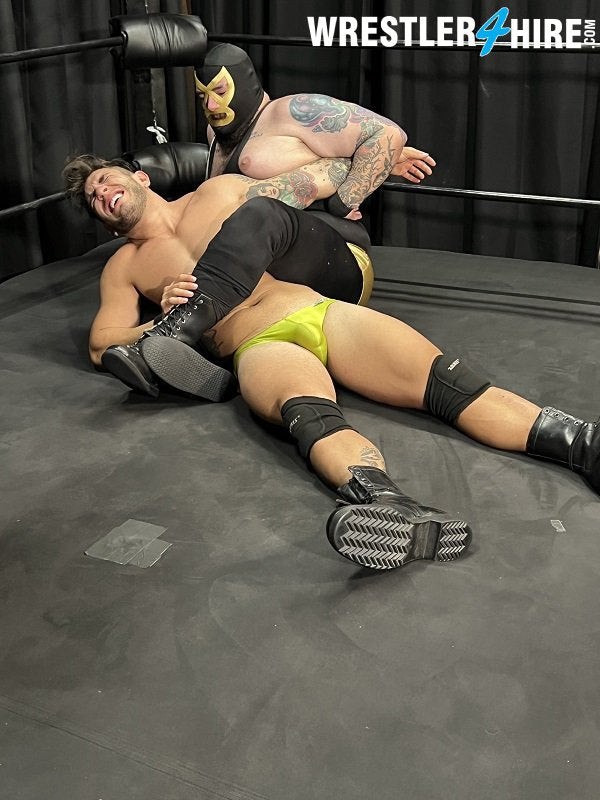 A young, handsome newcomer and a huge, brutal villain. It's a classic combination, but Vinny and Golden Terror make it great. They are perfect combination. The sexy little yellow speedo and black vest look great on the cocky Vinny. The whole match goes slowly, with the thugs slowly hurting the handsome rookie, Vinny flexes several times; he seems not be beaten compleatley. . Hopefully in the next match we will see more punishment until Vinny falls in the ring and can't get up!