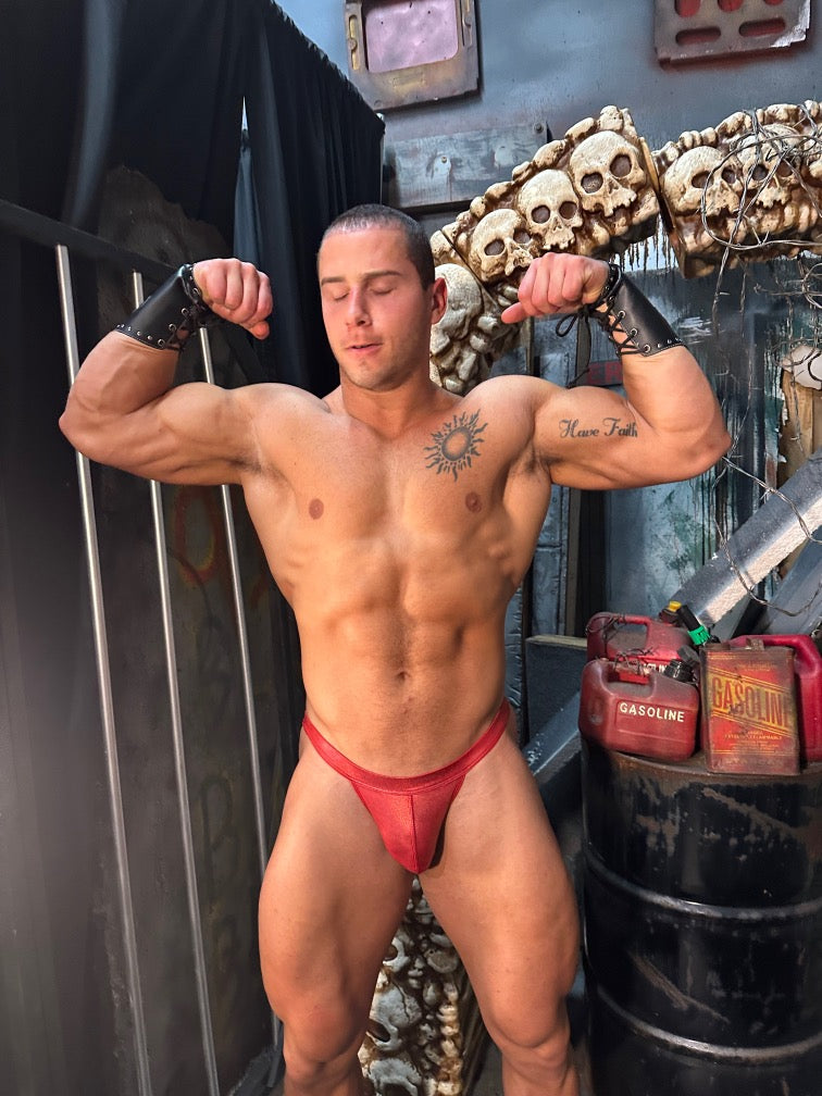 One thing that most heroes and villains have in abundance is confidence. They are supremely confident that they will win, no matter what the circumstance, no matter who the opponent. And why not? Most of them time, their confidence is born out by their results. Sometimes, however, it is the thing that blindly leads them to underestimate their opponent, usually with disastrous results. Such is the case here. Super Bronco is extremely confident, and let's be honest, if you possessed the body of Super Bronco, wouldn't you be too? We find him flexing and posing for the