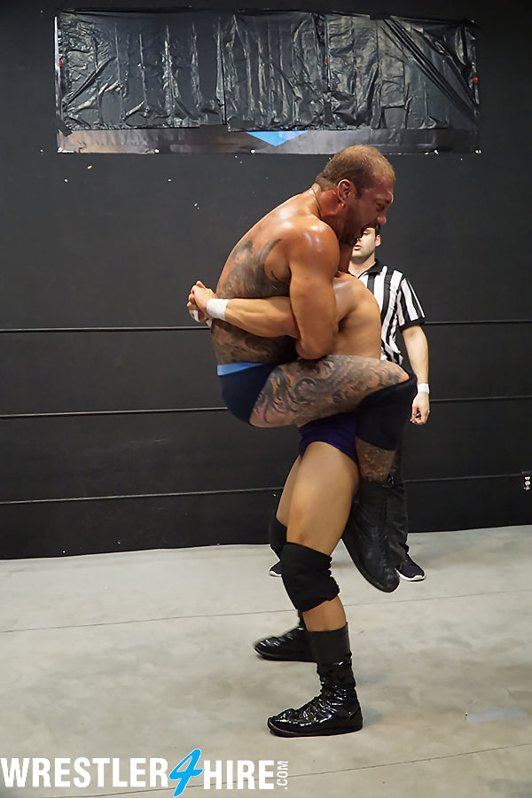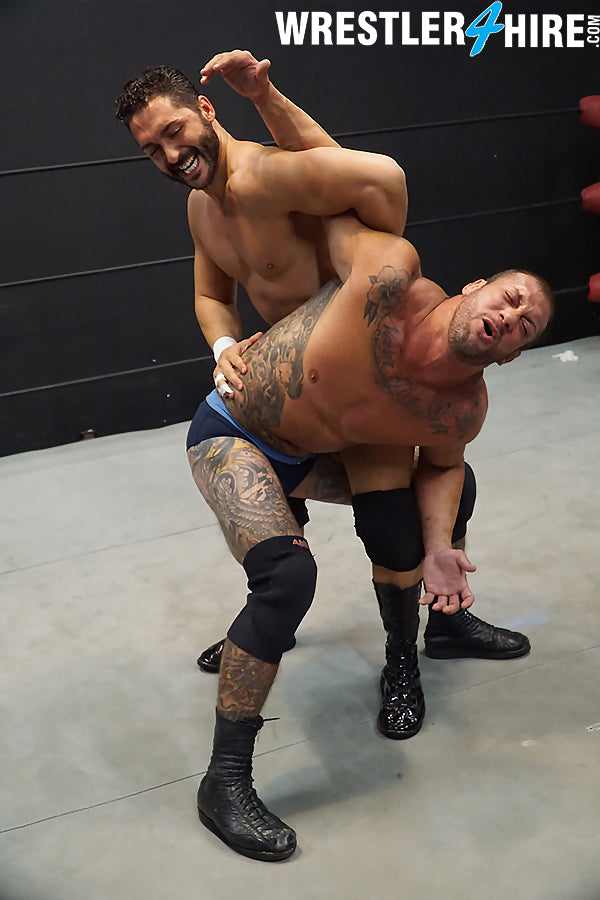 Balls are bashed, necks are cranked, faces are buried in armpits, and one sad referee flounders in the face of such total disregard for rules and regulations. This is a no rules battle...and neither fighter will be tested in new, bone-crushing ways!