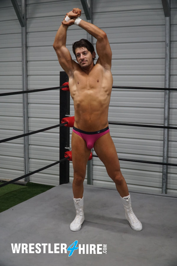 Z-Man and KARN represent two very different forms of sexual energy. Z-Man’s the hairless, glossy, cut pretty-boy. KARN’s the wolf-like, tatted, bearded stud with a sense of humor. Each offers a uniquely sensual wrestling style, as their equally powerful bodies fumble for the advantage, or stretch into positions of total humiliation or strength.