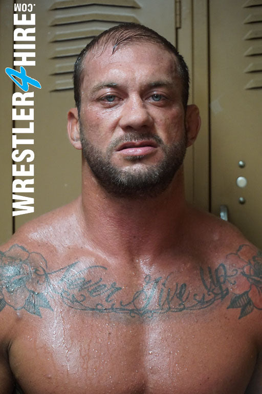 Zach Reno can’t get a break. After being punished in the ring, there’s still no safety in the locker room. The young dude has a hot little body and a real spirit, but he could never wrench the alpha dog position from someone like Wes Ratchett. Wes has the kind of eyes you hope are never staring at you. Even when he’s relatively calm, it’s obvious this is a man with the devil inside. And he likes that, and showing his opponents it’s true. Barely five minutes into this changing room clash, the usually long-lasting Zach is begging Wes to let him go. As if. That plea gets answered with a slam into the lockers, a boot to the neck, and an ankle lock and wishbone.